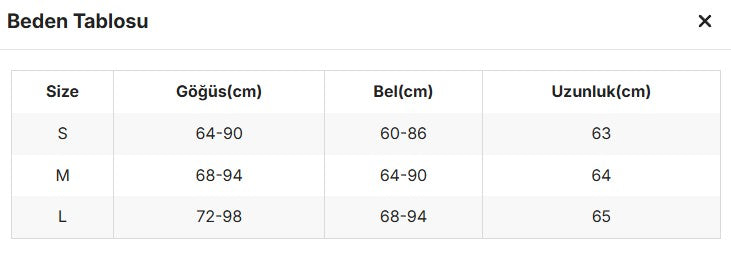 Ürünlerimizin beden aralıkları tam bedendir ve doğru bedeni seçmek için beden tablosuna bakabilir veya bizimle iletişime geçebilirsiniz.