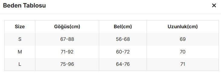 Ürünlerimizin beden aralıkları tam bedendir ve doğru bedeni seçmek için beden tablosuna bakabilir veya bizimle iletişime geçebilirsiniz.