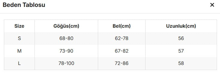 Ürünlerimizin beden aralıkları tam bedendir ve doğru bedeni seçmek için beden tablosuna bakabilir veya bizimle iletişime geçebilirsiniz.