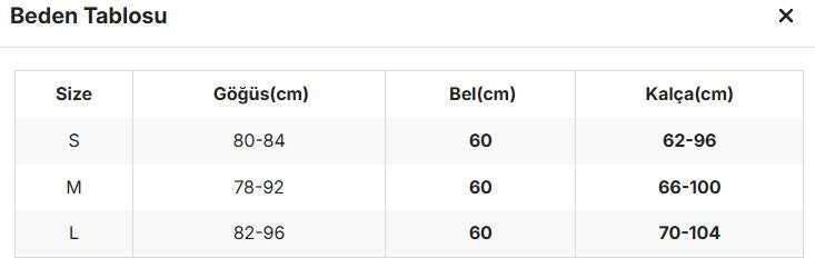 Ürünlerimizin beden aralıkları tam bedendir ve doğru bedeni seçmek için beden tablosuna bakabilir veya bizimle iletişime geçebilirsiniz.