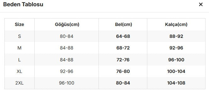 Ürünlerimizin beden aralıkları tam bedendir ve doğru bedeni seçmek için beden tablosuna bakabilir veya bizimle iletişime geçebilirsiniz.