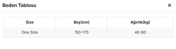 Ürünlerimizin beden aralıkları tam bedendir ve doğru bedeni seçmek için beden tablosuna bakabilir veya bizimle iletişime geçebilirsiniz.