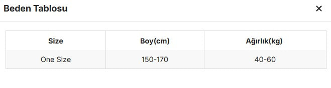Ürünlerimizin beden aralıkları tam bedendir ve doğru bedeni seçmek için beden tablosuna bakabilir veya bizimle iletişime geçebilirsiniz.