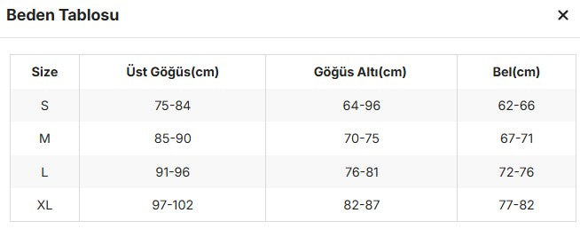 Ürünlerimizin beden aralıkları tam bedendir ve doğru bedeni seçmek için beden tablosuna bakabilir veya bizimle iletişime geçebilirsiniz.