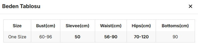 Ürünlerimizin beden aralıkları tam bedendir ve doğru bedeni seçmek için beden tablosuna bakabilir veya bizimle iletişime geçebilirsiniz.